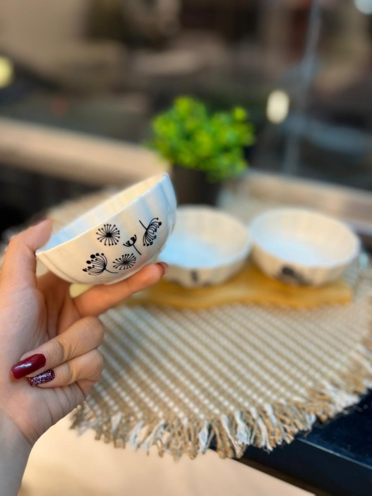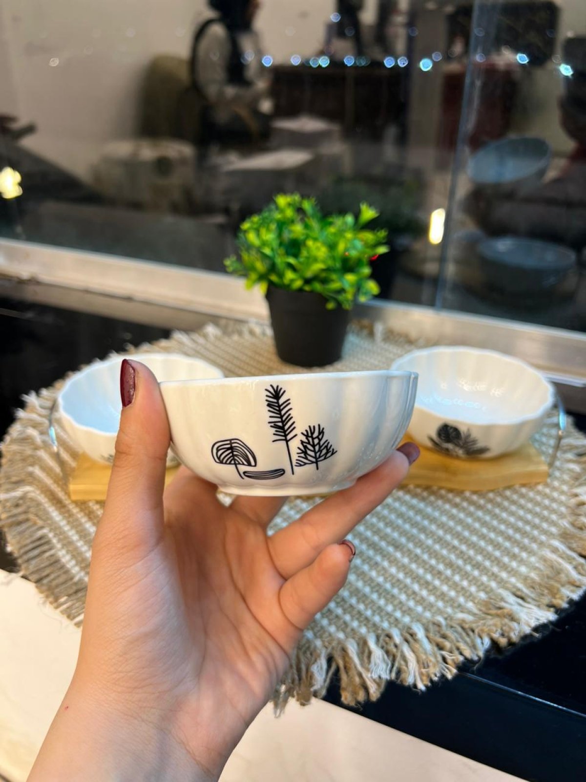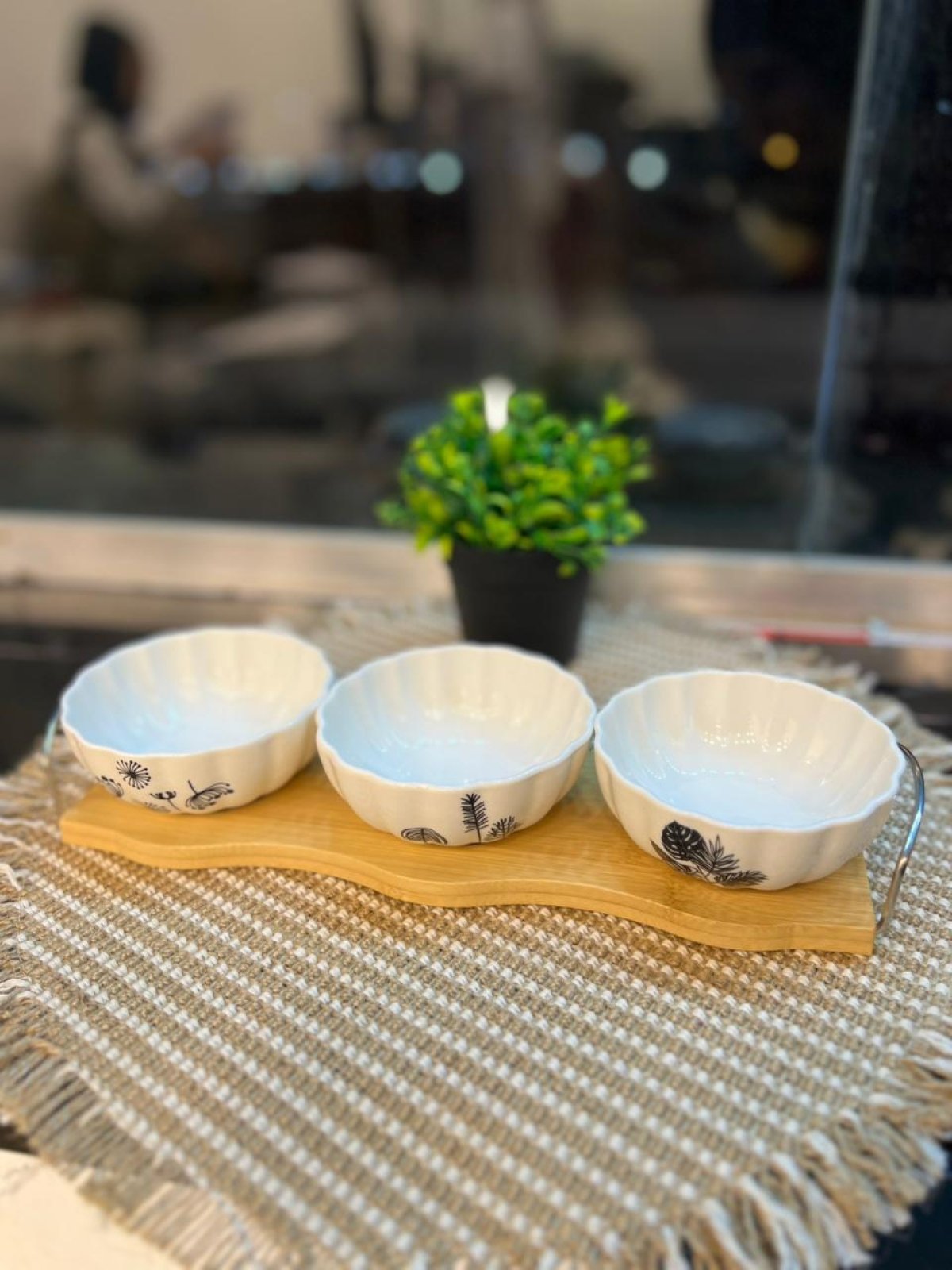 طقم صوصات او مكسرات وكاندى بحامل خشب وبولات بورسلين