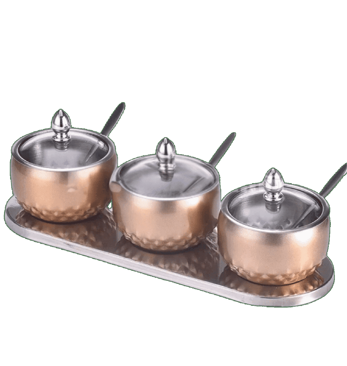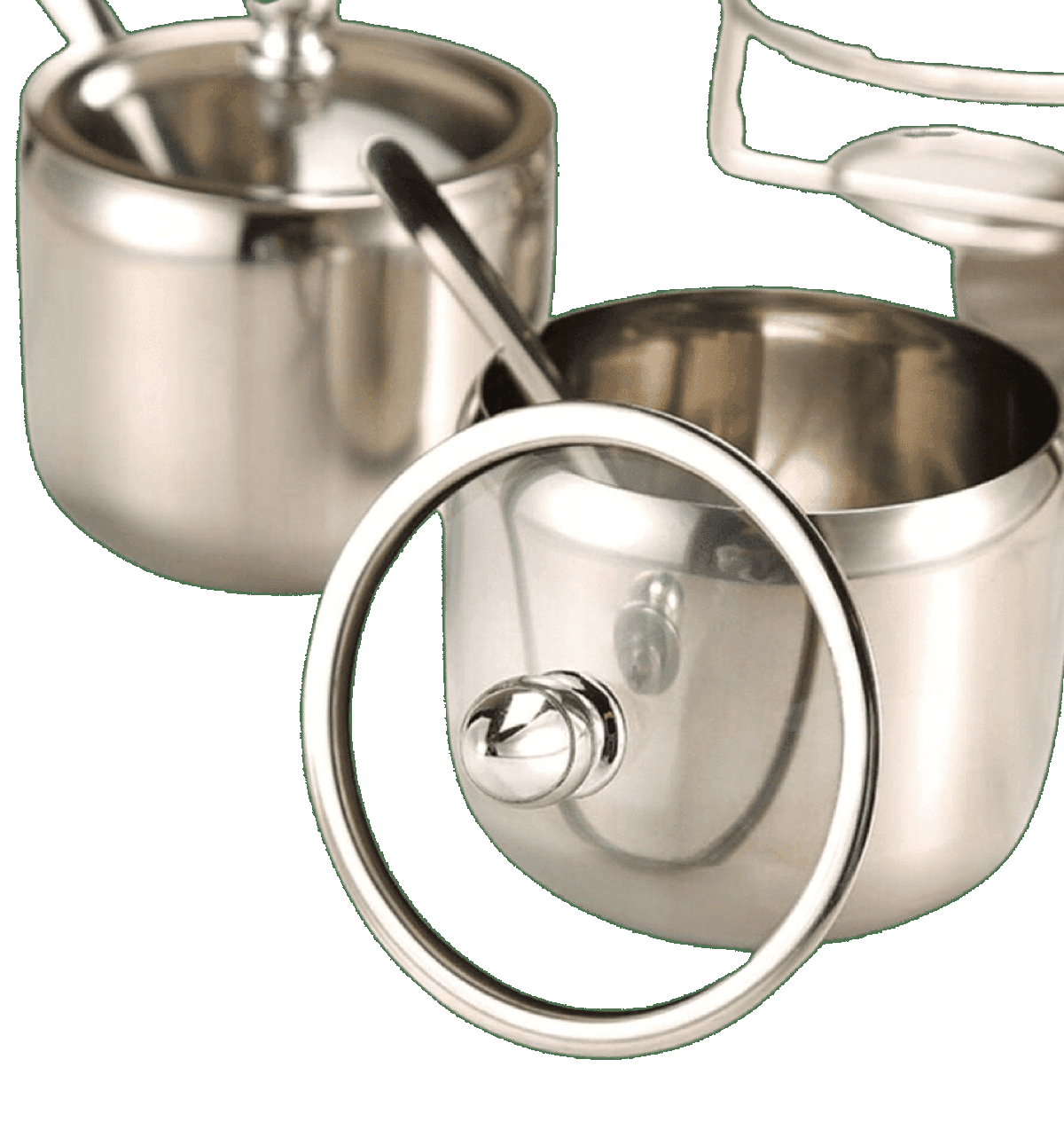خامة استالس عالية الجودة لضمان المتانة. - غطاء محكم الغلق. - مع 3 معالق متناسقة لكل قطعة لسهولة الاستخدام.
