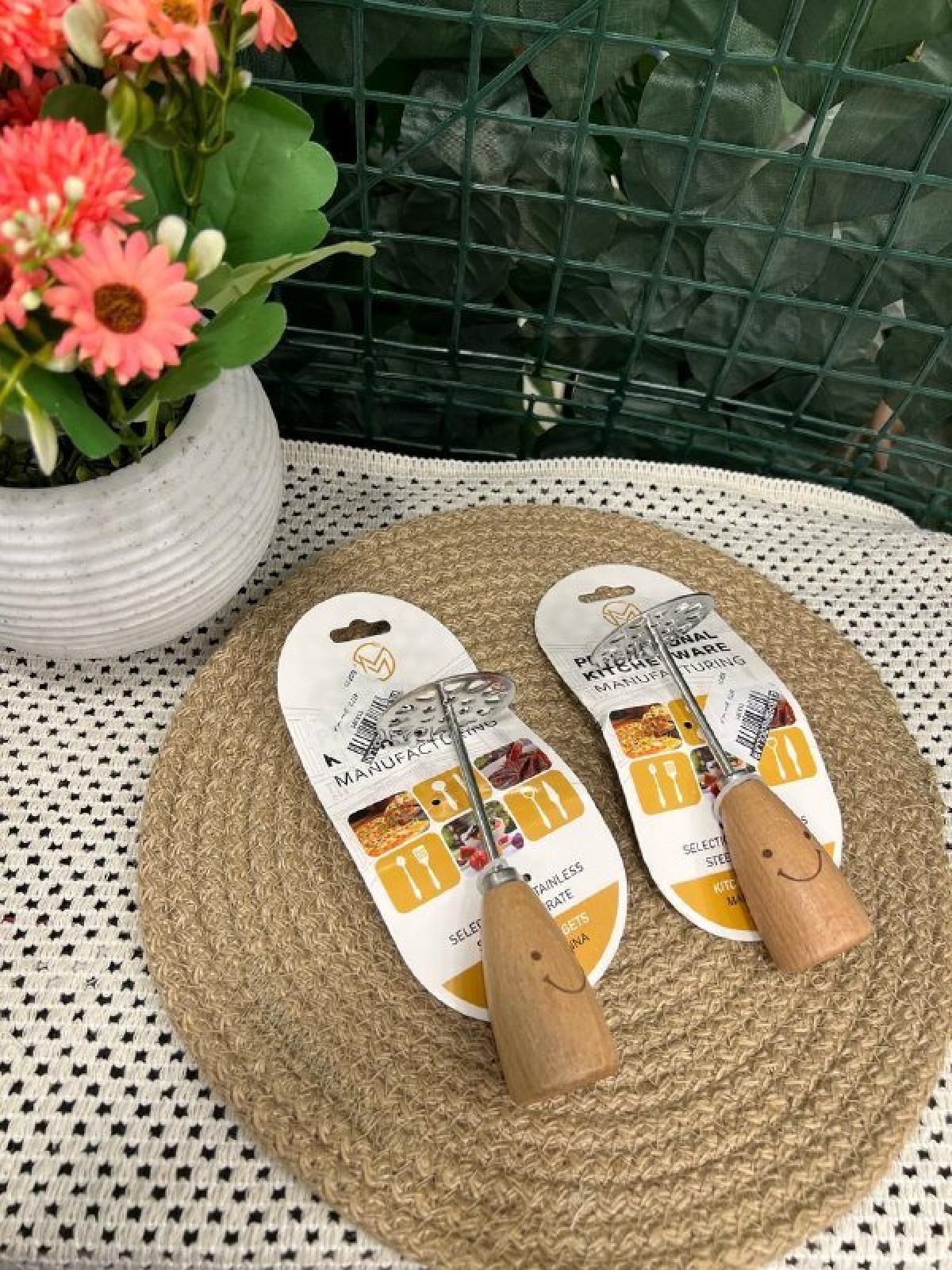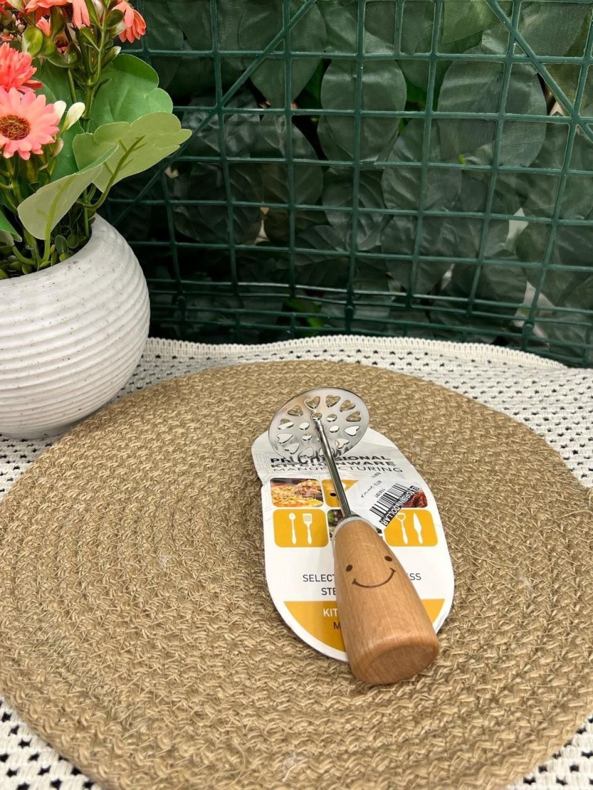 - تصميم شيك على شكل قلوب - مثالي للهرس الخضار - المقبض الخشبي مريح في الاستخدام وبيساعدك في التحكم - مناسبة للاستخدام اليومي