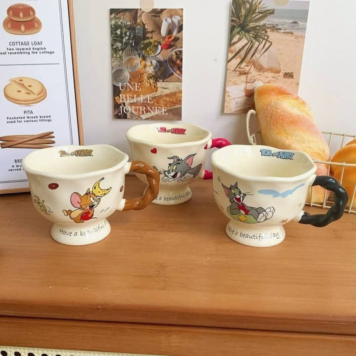 مج توم اند جيري - خامة بورسلين عالية الجودة - تصميم كيوت جدًا وملون، يناسب الكبار والأطفال - مثالي للمشروبات الساخنة والباردة - شكله مبهج وهيخلي الكوفي كورنر شكله تحفه لو عندك كوفي كورنر