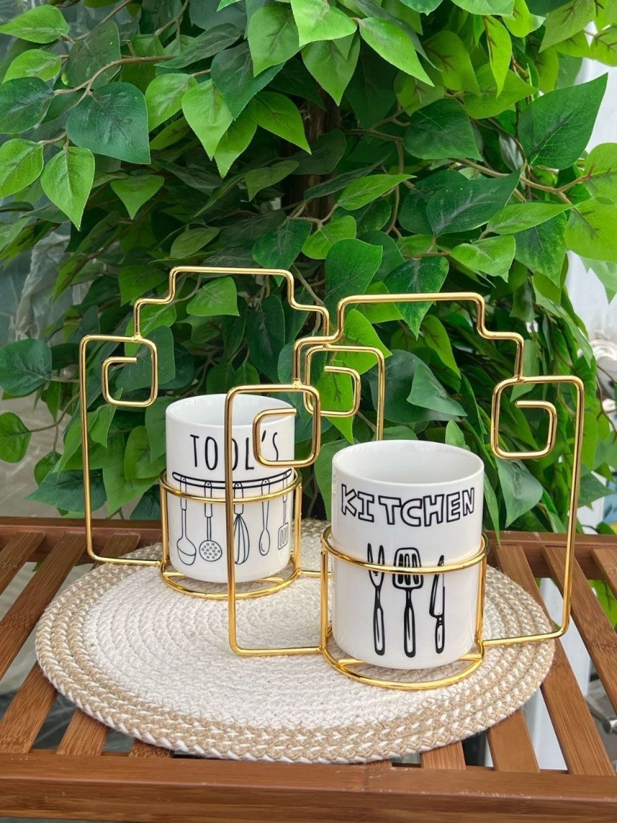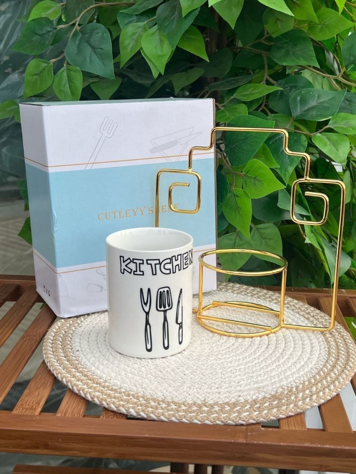 حامل معالق بورسلين بستاند جولد - تصميم شيك وعصري - بستاند جولد يعطيه لمسة فخمة - خامة بورسلين متينة وسهلة التنظيف