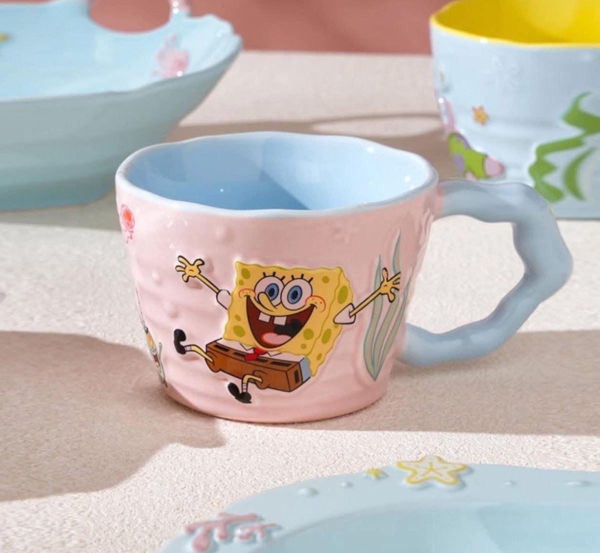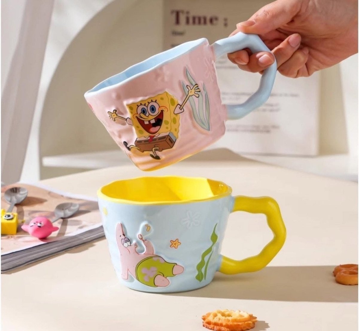 مج ديزني بورسلين - شكل سبونج بوب المميز والشيك - يتضمن معلقه صغيرة - مقاس المج: 15.5*12.3*9 سم - خامة بورسلين عالية الجودة - مثالي للأطفال أو لمحبي ديزني