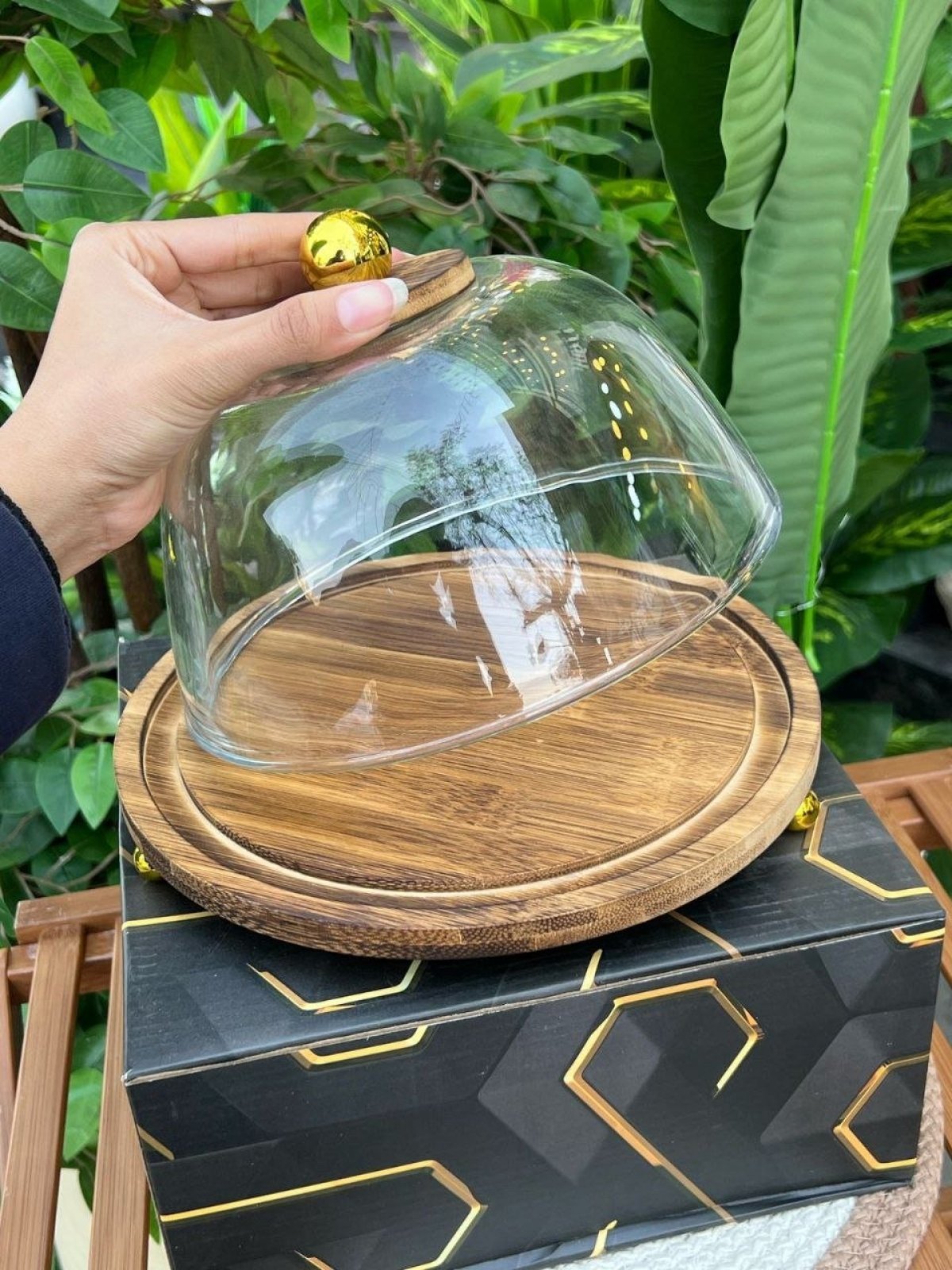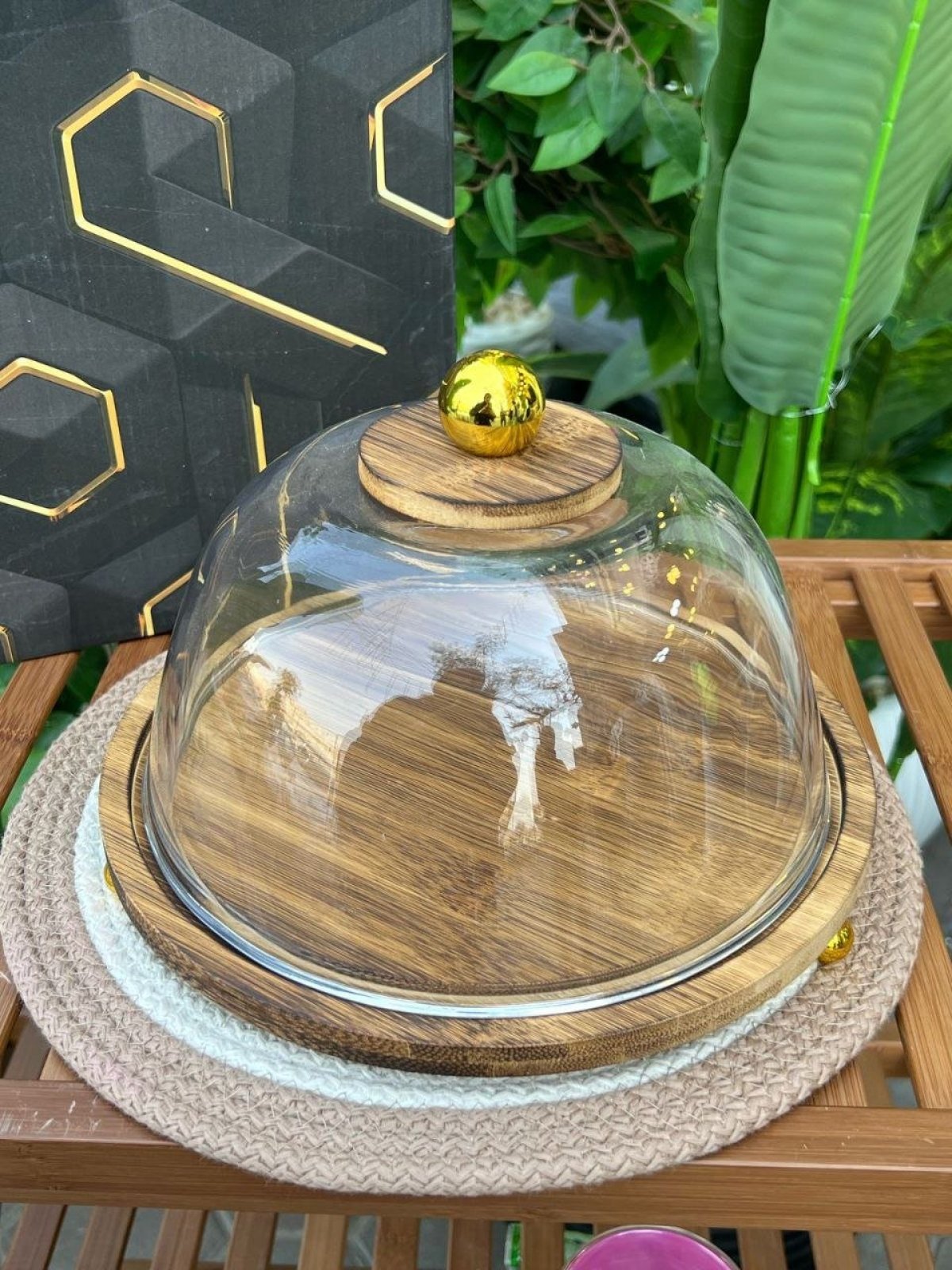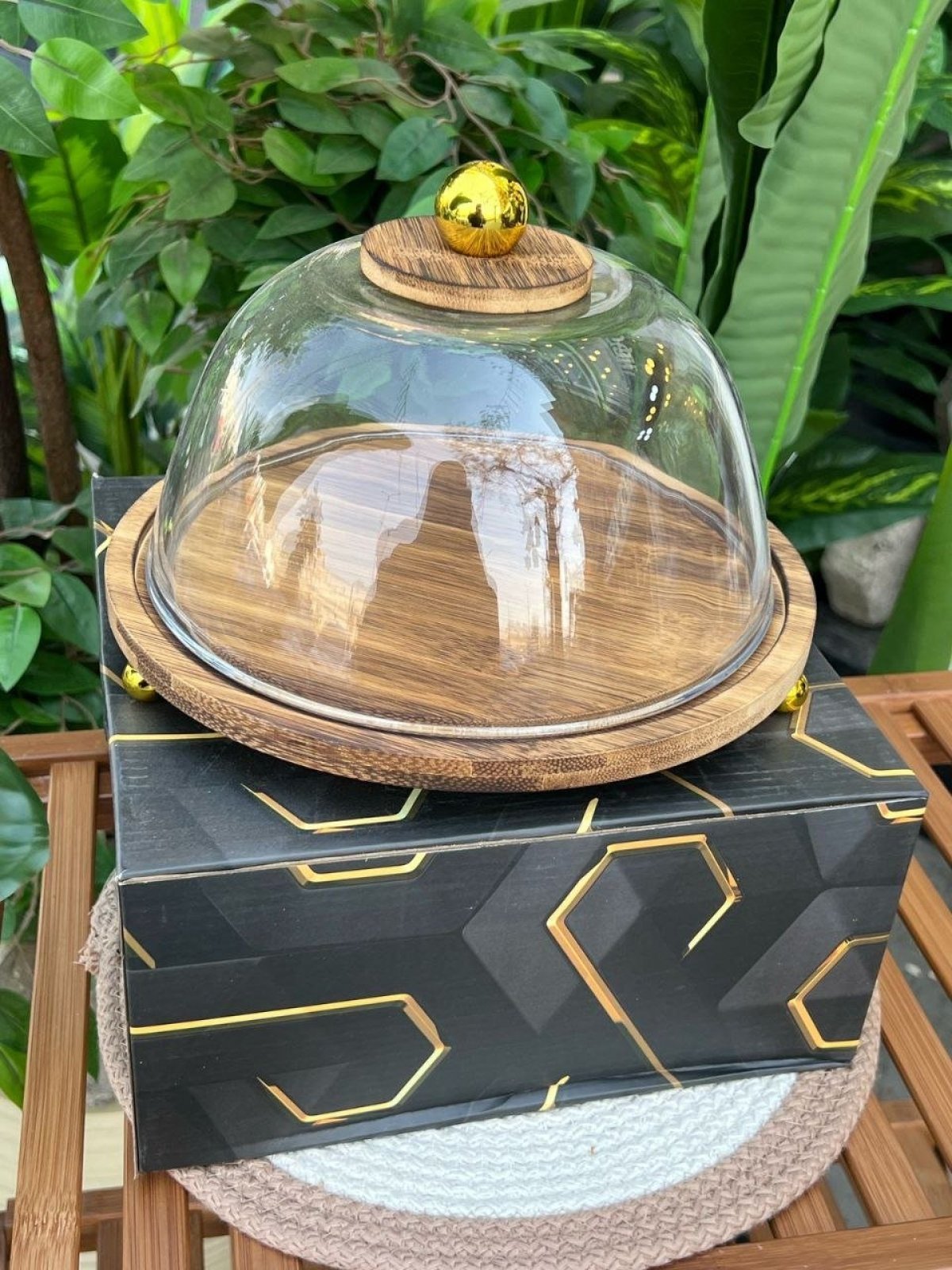 - تصميم فخم وأنيق يضيف لمسة من الفخامه علي سفرتك - الحافظة مصنوعة من الزجاج عالي الجودة لحفظ الكيك بأمان وفي نفس الوقت تحافظلك من الرطوبه - يأتي معها كوستر خشب زان - مثالية للتقديم هتشرفك