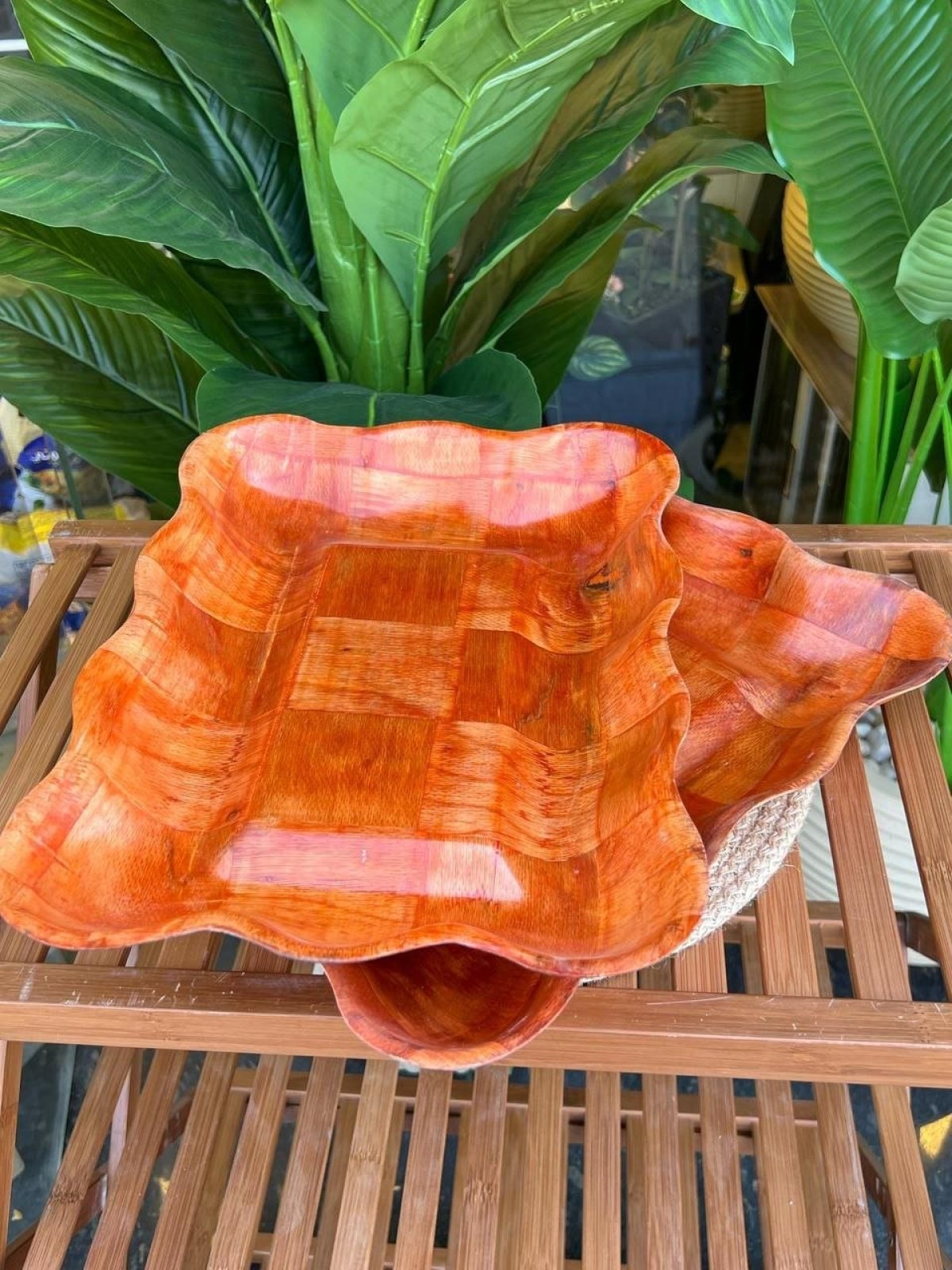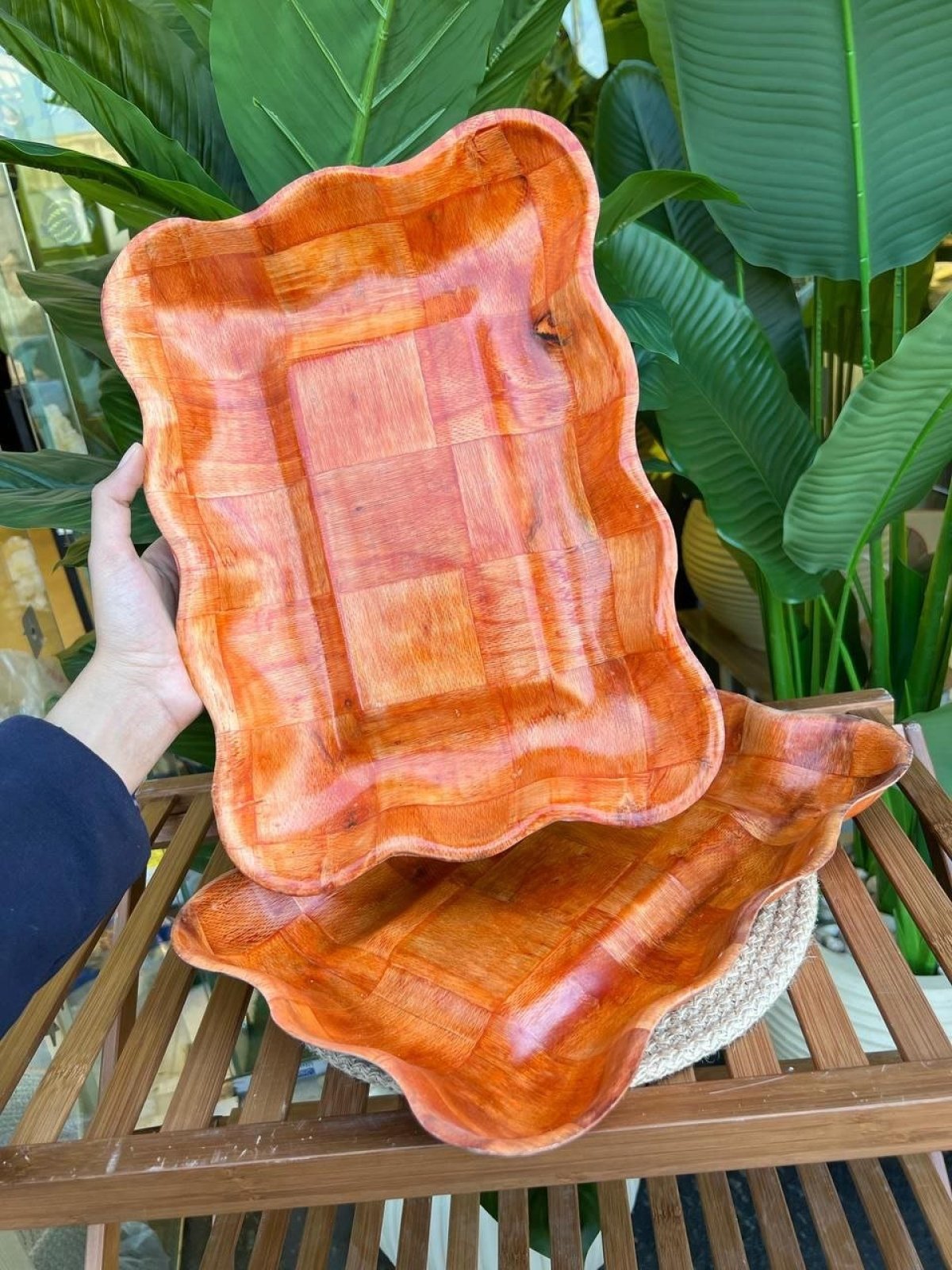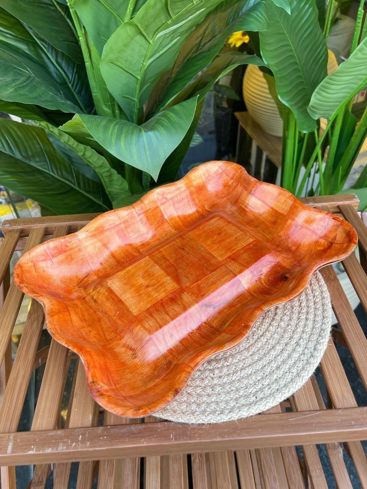 طبق خشب سرسوع مستطيل لتقديم التسالي أو الحلويات أو المقبلات، تصميم عصري وشيك، مناسب لكذا استخدام🤍