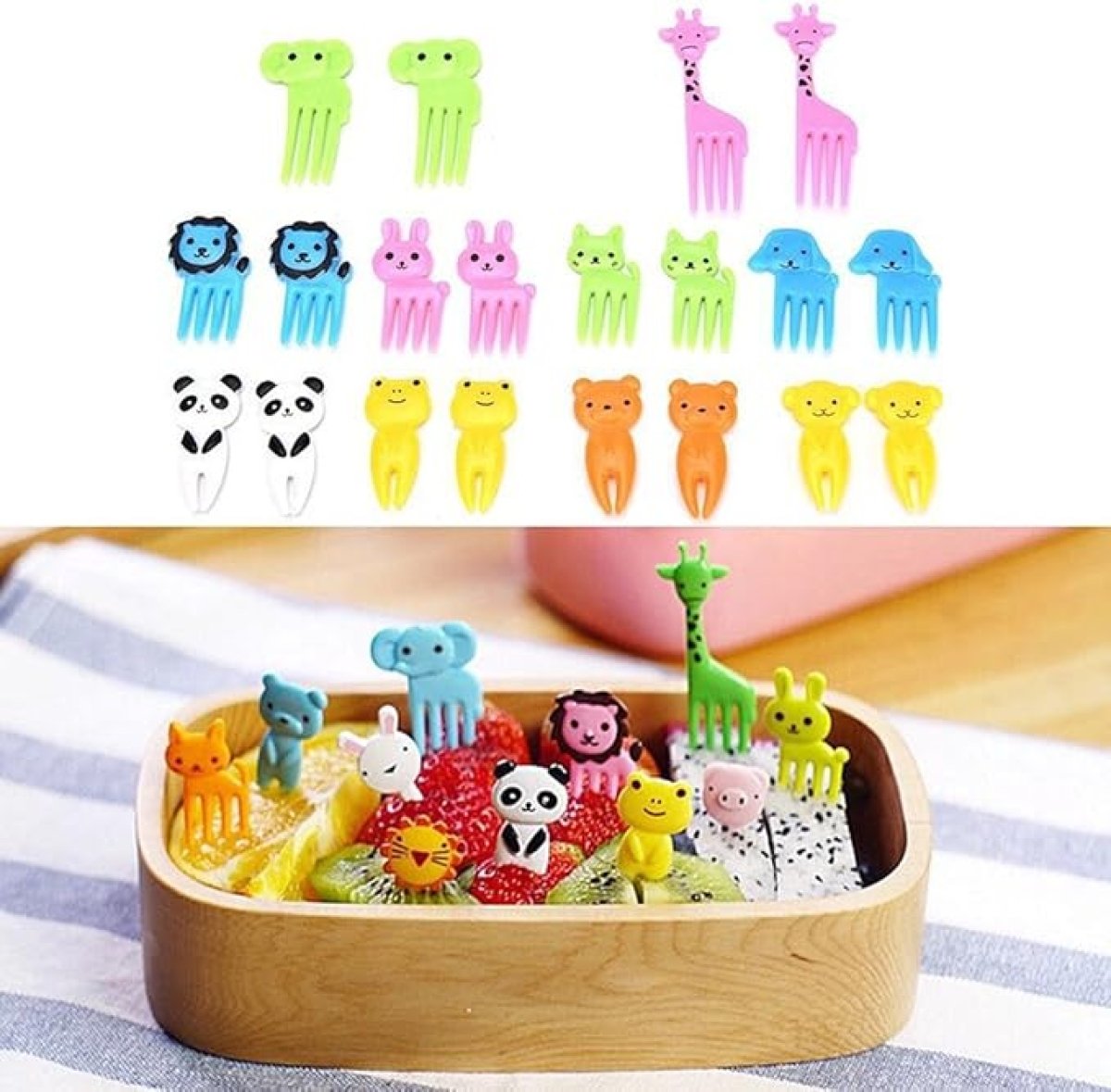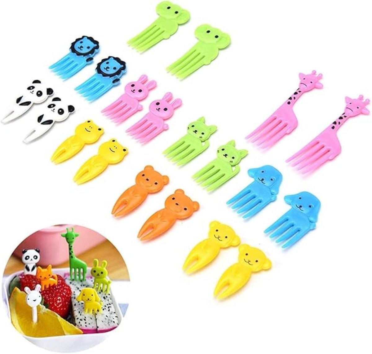 أعواد طعام مثالية للبنتو - مصممة بأشكال حيوانات لطيفة، مثل الزرافة، الفيل، الكلب، الدب، القط، الأسد، القرد، الأرنب، الباندا، الضفدع، الخنزير، بالإضافة إلى عيون شخصيات كرتونية ونوتات موسيقية. مثالية لوجبات الغداء في صندوق بينتو، أو حفلات البوفيه، أو حفلات أعياد ميلاد الأطفال. مادة صحية - أعواد طعام الأطفال هذه مصنوعة من مادة البولي بروبيلين الصالحة للأكل، خالية من مادة BPA، غير سامة، آمنة على الطعام والأطفال، ومقاومة للحرارة حتى 80 درجة مئوية. مناسبة للأطفال - المقاس: 3-6 سم/1.18 بوصة - 2.36 بوصة (الطول). أعواد بينتو صغيرة وخفيفة الوزن، لذا فهي مناسبة للأطفال الصغار والكبار على حد سواء. قابلة لإعادة الاستخدام وسهلة التنظيف - زينة بينتو على شكل حيوانات من Gdaya سهلة الاستخدام والتنظيف. ما عليك سوى وضعها في الكوب مع الماء بعد كل استخدام ورجها جيدًا لتنظيفها بسرعة. تُغسل يدويًا فقط. تتضمن العبوة: 10 عود أسنان على شكل حيوانات لطيفة على شكل طعام فواكه. تأتي هذه الشوكات بألوان مختلفة، مثالية لتزيين صندوق بينتو، مريحة للأطفال لأخذ الفاكهة والمعجنات والحلويات إلى رياض الأطفال أو للبالغين إلى المكتب، لا مزيد من الأصابع الدهنية والقذرة أثناء تناول الطعام!