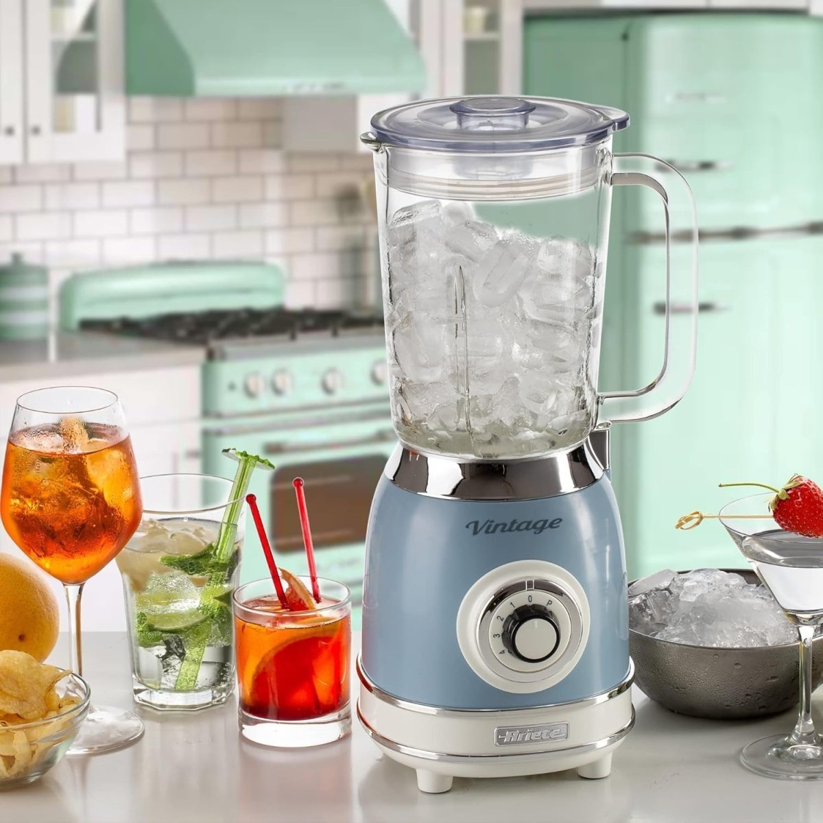 خلاط زجاجي عتيق من اريتي - 1.5 لتر، 1000 واط، 4 اعدادات للسرعةمع وظيفة النبض، 2 مطحنة للتقطيع - مثالية للبوريه، وكسر الثلج، والمشروبات المجمدة والسموذي (ازرق اللون)، Art583-V-Bl