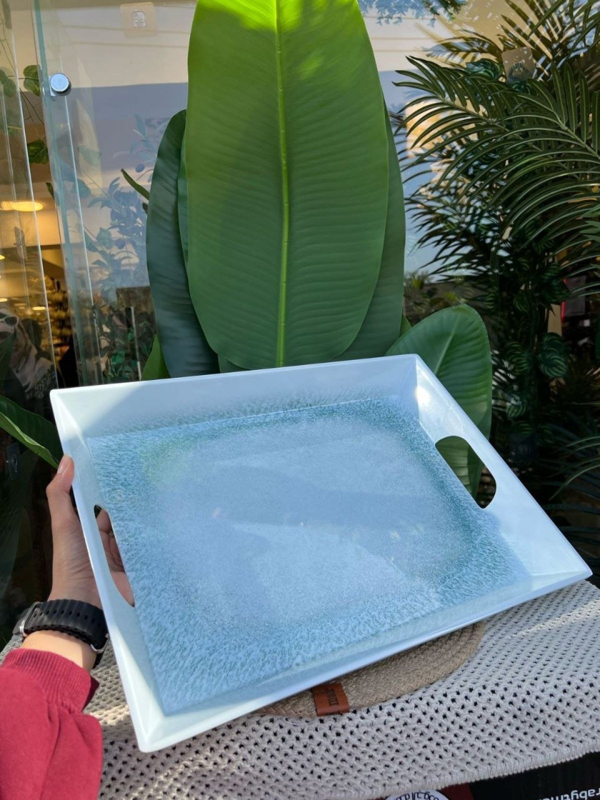 صينيه تقديم ميلامين علي شكل مستطيل، حجمها كبير ومناسبة لتقديم الكوبايات والكاسات في المناسبات 😍❤️ ده غير أنها ضد الكسر 👌