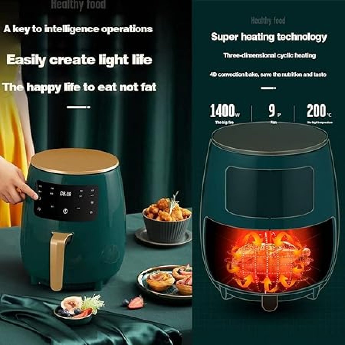 تصميم أنيق: تتميز هذه المقلاة الهوائية بلمسة نهائية لامعة ومظهر عصري يُكمل ديكور أي مطبخ. قلي هوائي ساخن للغاية: تضمن ميزة القلي الهوائي الساخن للغاية طعامًا مقرمشًا ومُطهى بالتساوي في كل مرة. طهي متعدد الاستخدامات: بفضل إمكانية القلي، والتحميص، والخبز، والشواء، تُقدم هذه المقلاة الهوائية خيارات طهي متنوعة. سهلة التنظيف: أجزاء آمنة للغسل في غسالة الأطباق تُسهّل عملية التنظيف، مما يمنحك وقتًا أطول للاستمتاع بوجباتك. أدوات تحكم سهلة الاستخدام: تُسهّل شاشة LCD التي تعمل باللمس والمؤقت ضبط ومراقبة أوقات الطهي.