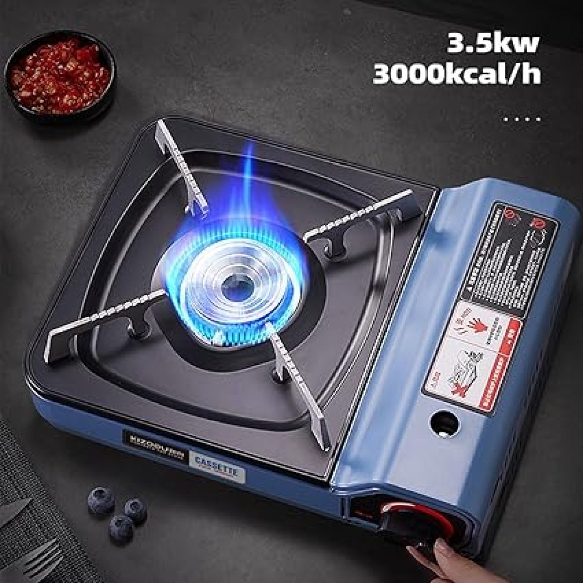 مثالي للتخييم: موقد التخييم الخاص بنا هو رفيقك المثالي للتخييم، والمشي لمسافات طويلة، وحمل حقائب الظهر، وغيرها من الأنشطة الخارجية. تصميمه المدمج يسمح له بالتركيب بشكل مريح داخل علبة بلاستيكية صلبة، مما يجعل نقله في غاية السهولة.