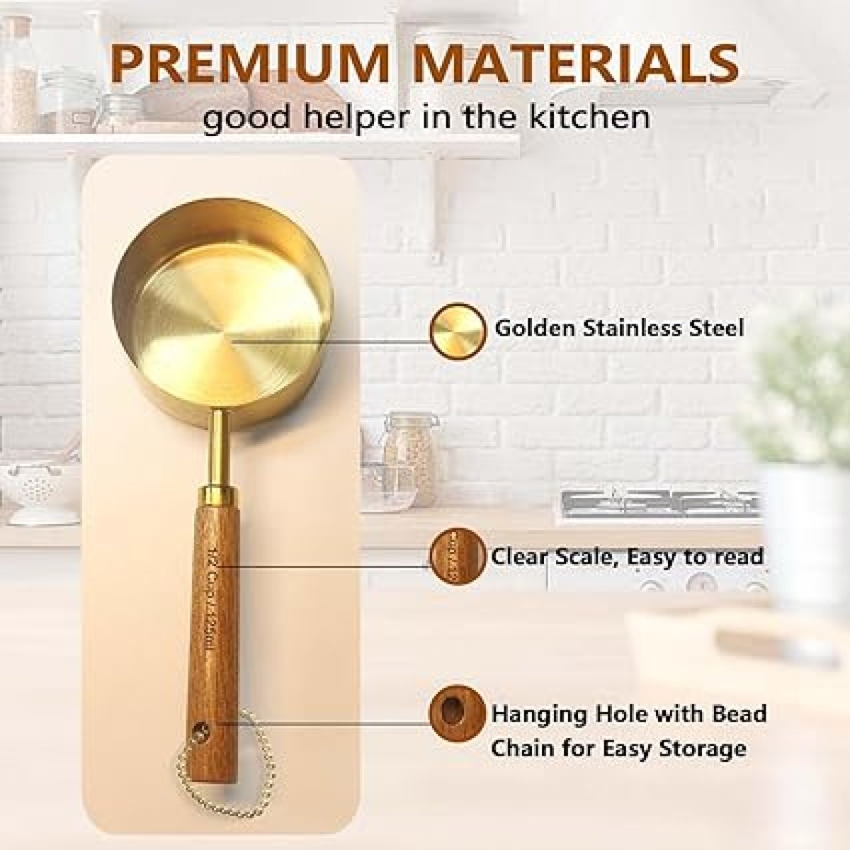 【فولاذ مقاوم للصدأ عالي الجودة】 صُنع الكوب المعياري الذهبي من الفولاذ المقاوم للصدأ السميك عالي الجودة والآمن غذائيًا، كما أنه مقاوم للصدأ والتآكل، وغير سام وخالي من الروائح. فضلًا عن أنه يُستخدم لكلٍ من المكونات الجافة والسائلة بأمان.