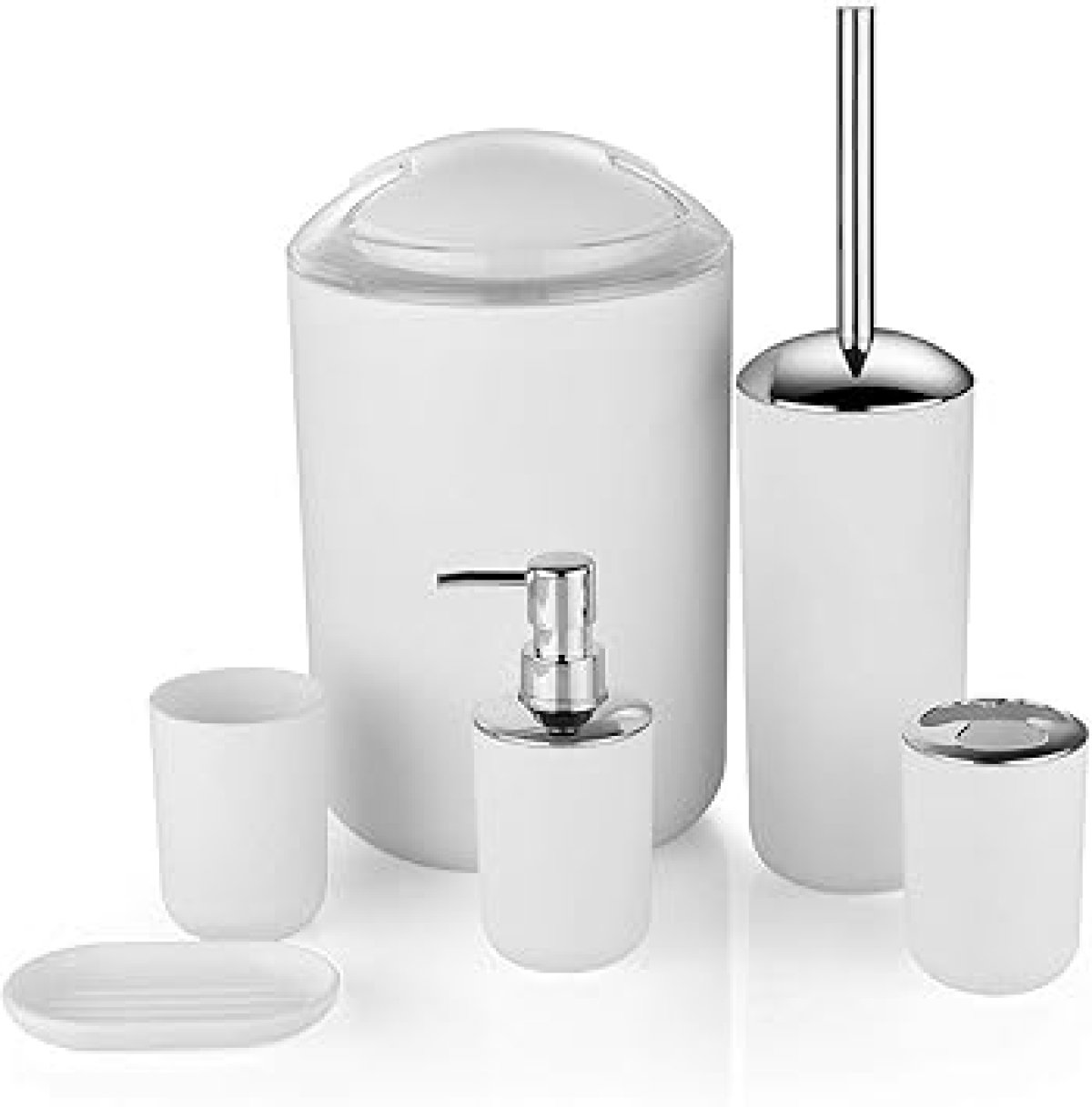 العلامة التجارية: باث لوكس سلة المهملات: 7.48*7.48*12.60 بوصة. النوع: مجموعة مستلزمات الحمام الخامة: بلاستيك تتضمن موزع لوشن، وحامل فرشاة أسنان، وكوب، وصبانة، وسلة مهملات، وفرشاة تواليت. حامل فرشاة الأسنان يسع 4 فرش أسنان، كوب للشرب أو لتخزين فرش المكياج، والملاقط وماكينات الحلاقة. السعة: موزع...