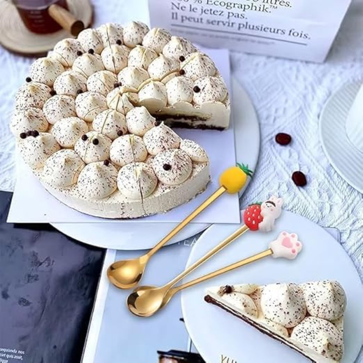 طقم معالق فاكهة وحلويات بتصميم لطيف، معالق تقليب للقهوة والحلويات من الفولاذ المقاوم للصدأ، مقاس 16 سم (16 سم، لون ذهبي