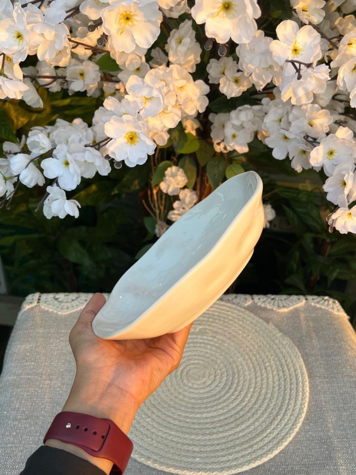 شكله شيك ونقشته ناعمة، ينفع للتقديم أو الاستخدام اليومي، خامة تقيلة وجودة عالية– بورسلين حراري