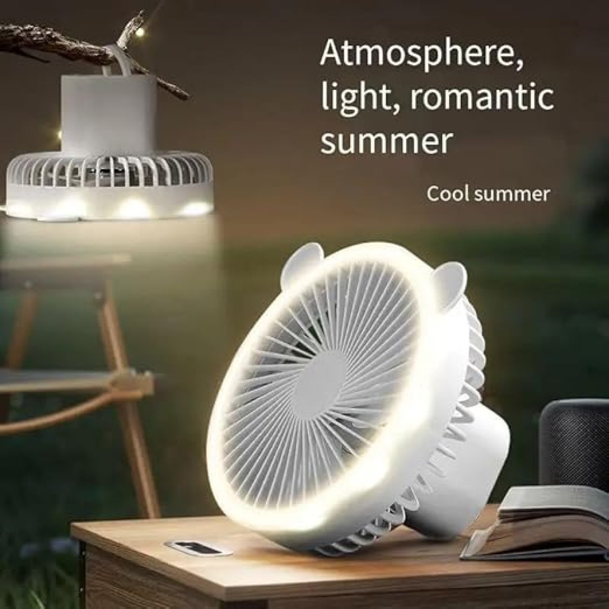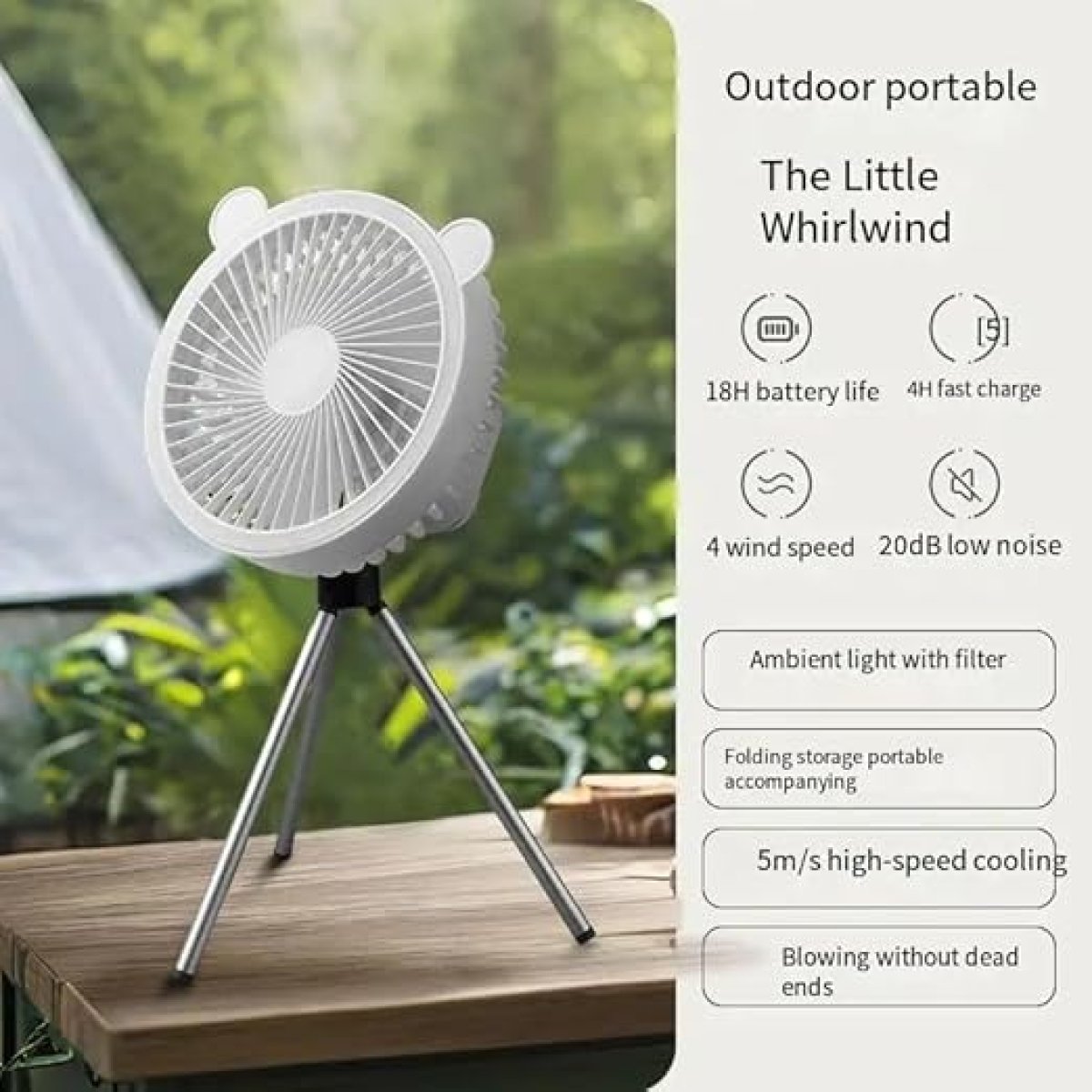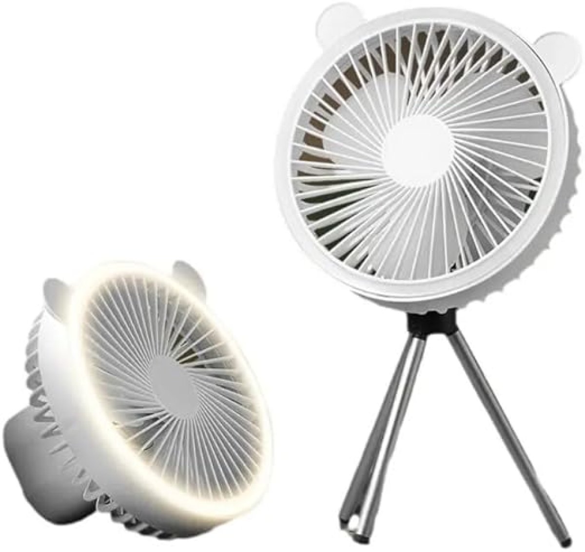 تصميم متعدد الاستخدامات: مروحة مكتب صغيرة لطيفة تتميز بأذني دب رائعة وحامل ثلاثي القوائم مريح لوضع ثابت على أي سطح مستوٍ