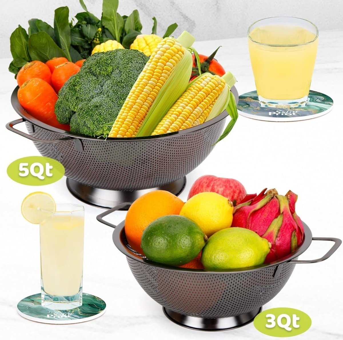 حجم صغير عملي – مناسبة لتصفية الخضار – بيد لسهولة الاستخدام – خامة متينة وسهلة التنضيف