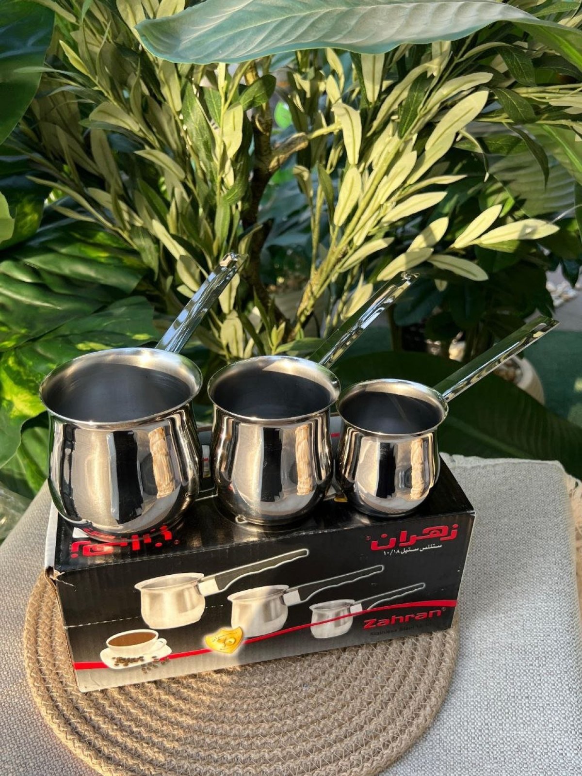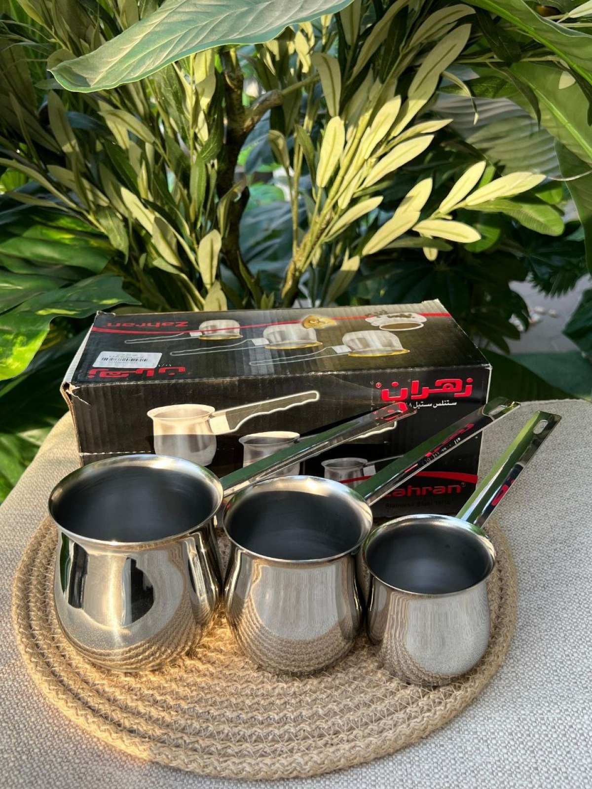 طقم كنكة استالس من زهران جودة عالية 18/10 الطقم مكوّن من 3 مقاسات مختلفة، مناسب لكل الاستخدامات اليومية شكل أنيق وخامة متينة
