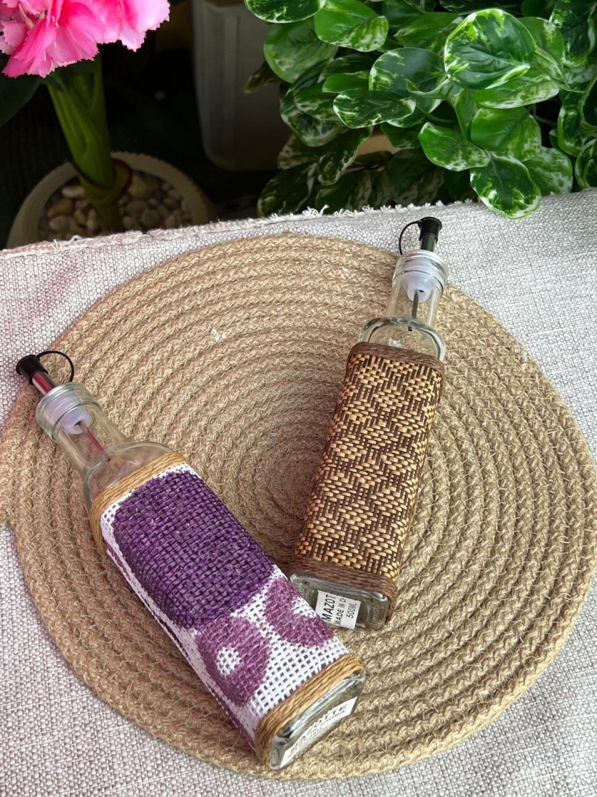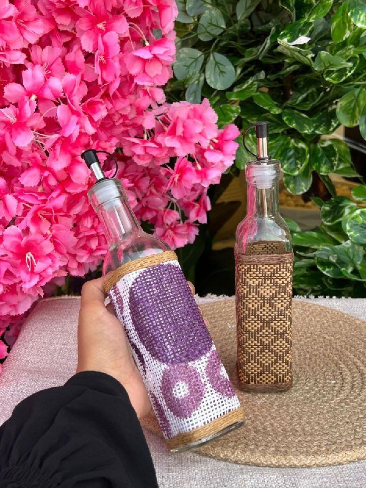 • زجاج بتصميم أنيق • حوالين الزجاج كفر خوص شكله شيك جدًا • تنفع للمطبخ أو ركن التقديم
