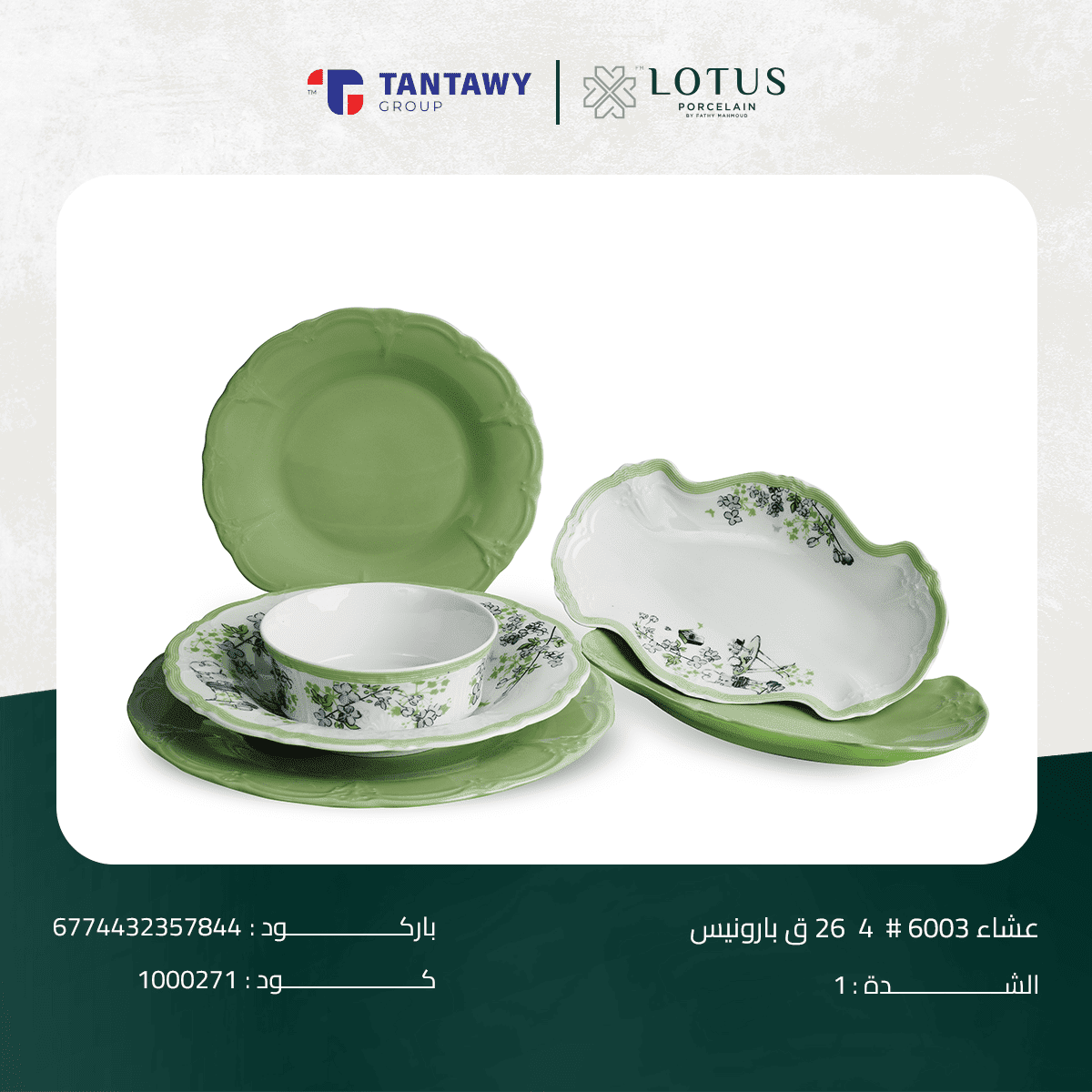 طقم عشاء بورسلين 6003 فتحي محمود بارونيس للمطبخ من لوتس، 26 قطعة، رقم زيتي
