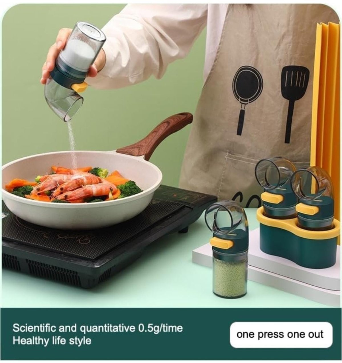 • Quick Use: This press type spice container is very convenient, just press of the bottle, get 5g of seasoning accurately and quickly, coarse grains 3g per press.